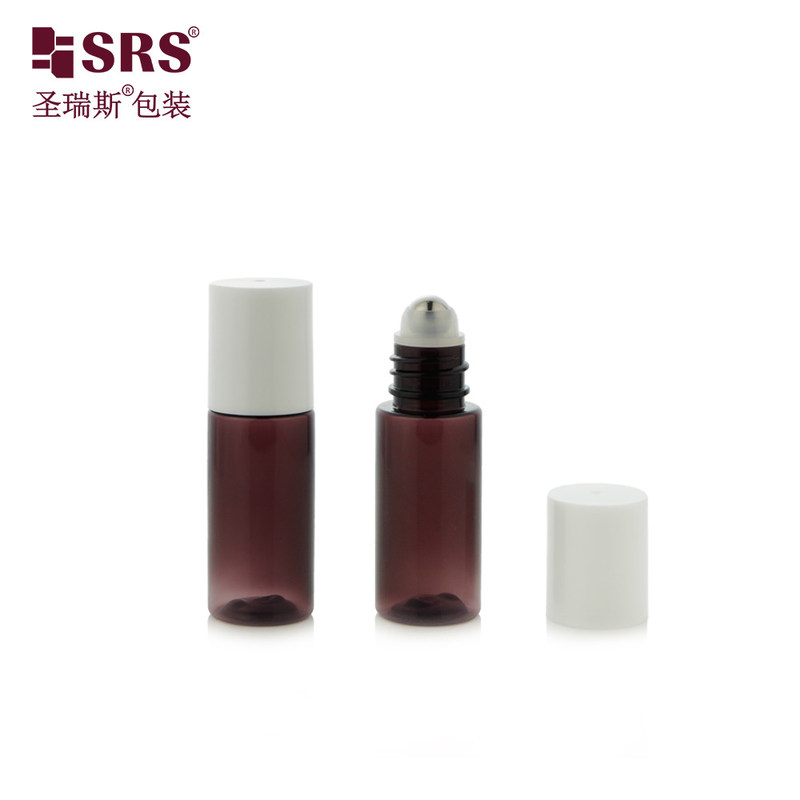 PET18-15ML 20ML 半透明パープルPETプラスチックボトル、ホワイトキャップ付き、アフターシェーブセラム用ステンレススチールローラーボール